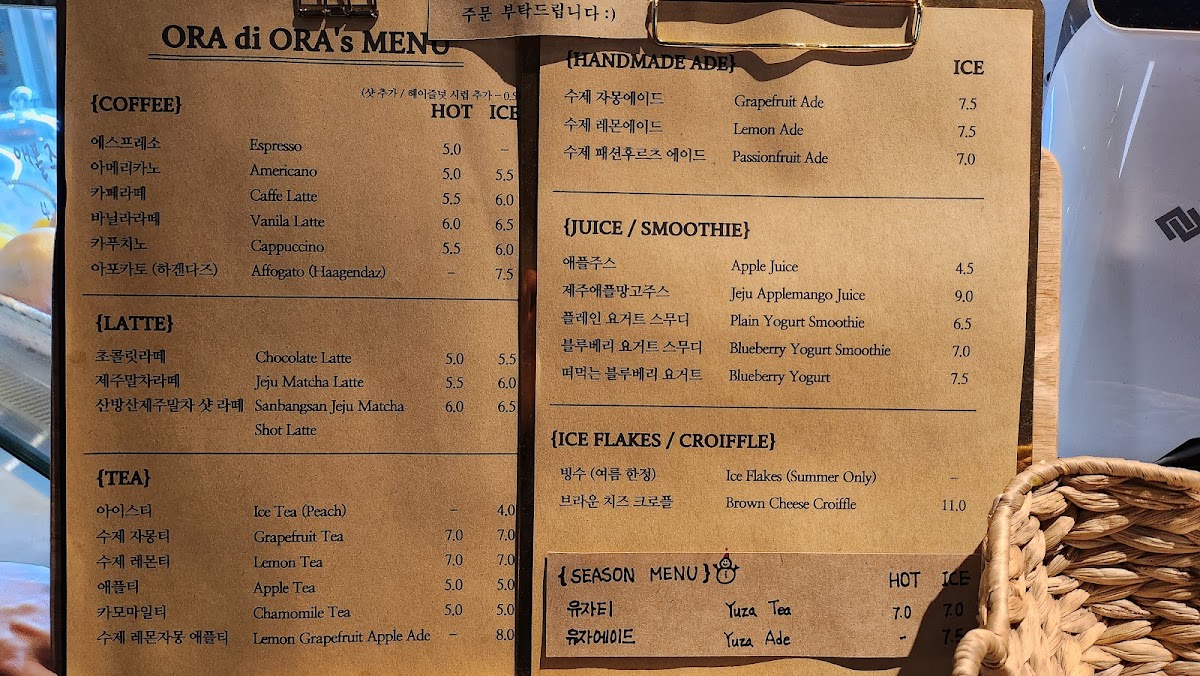 Welcome to ORA di ORA, a delightful café tucked away in Seogwipo, Jeju. This charming spot offers an inviting atmosphere, coupled with attentive service that makes every visit memorable. Diners can indulge in a variety of scrumptious menu items, from hearty soup paired with fluffy focaccia to a delectable lineup of freshly baked breads and pastries.